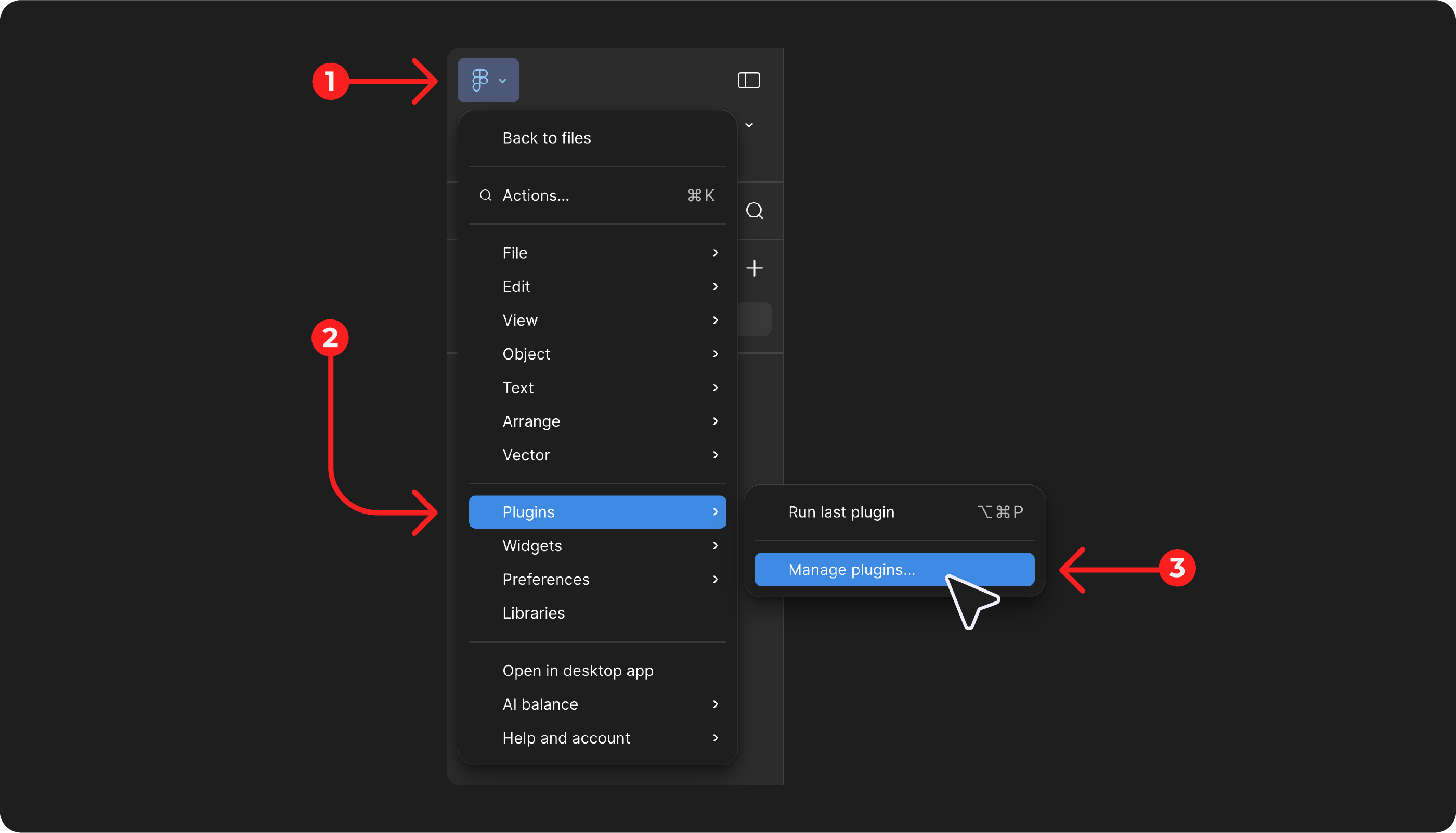 If you are already working within a project, open the Figma menu → Plugins → Manage plugins, search for “SVGator”, select it from the results, and click Run. Later, you can find the plugin in the Actions panel, whenever you need it.