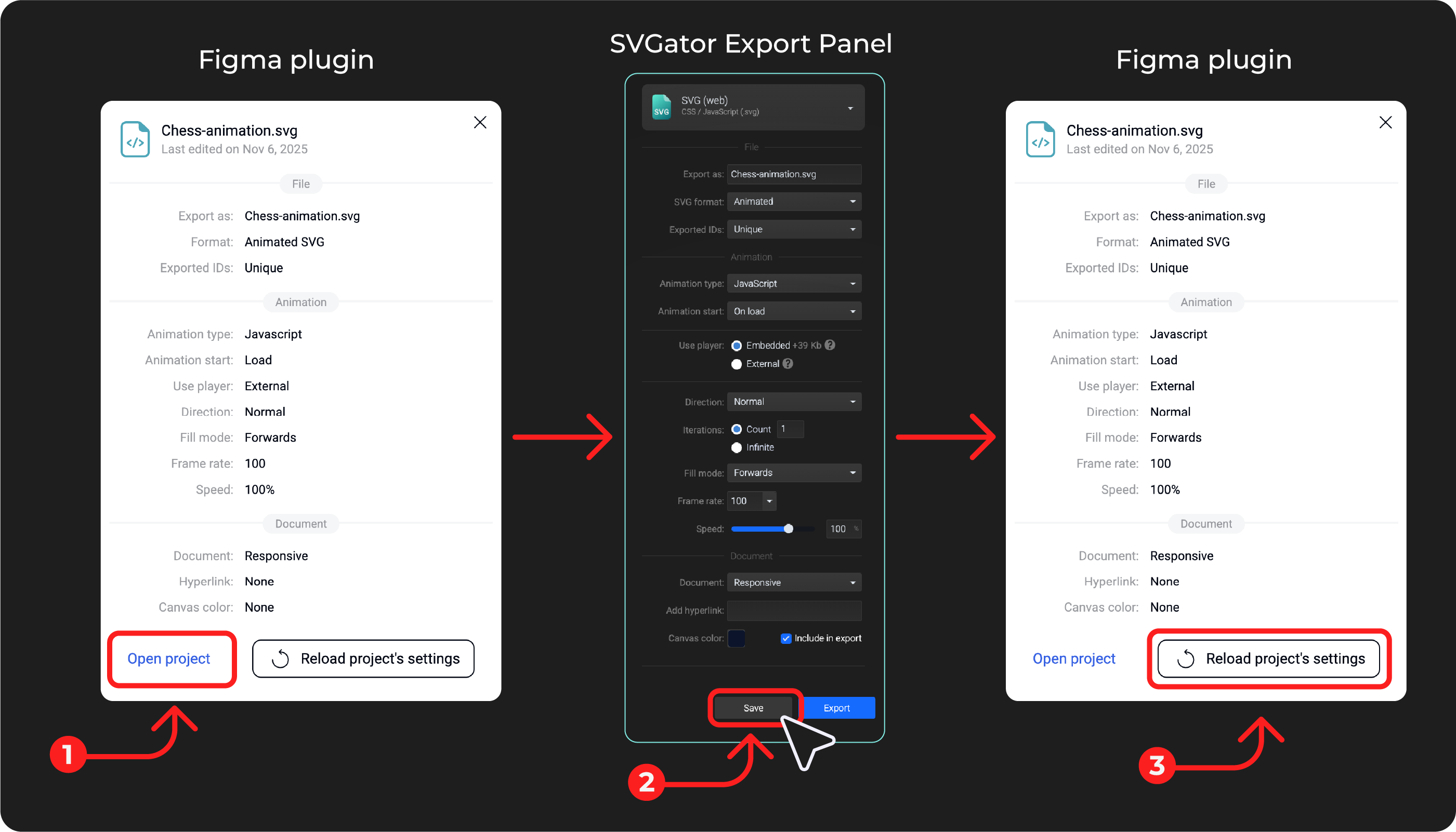 The SVGator Figma plugin lets you export animations directly from the plugin without switching between tools. Available formats include animated SVG, Lottie, Flutter, and React Native.